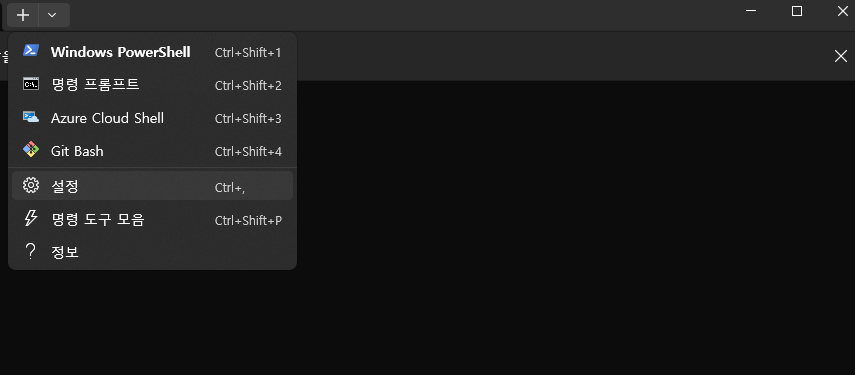 그럴 경우, Git Bash를 Windows Terminal에 추가해서 아래 그림처럼 탭에 생성하는 과정입니다.